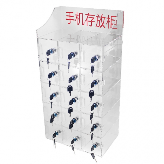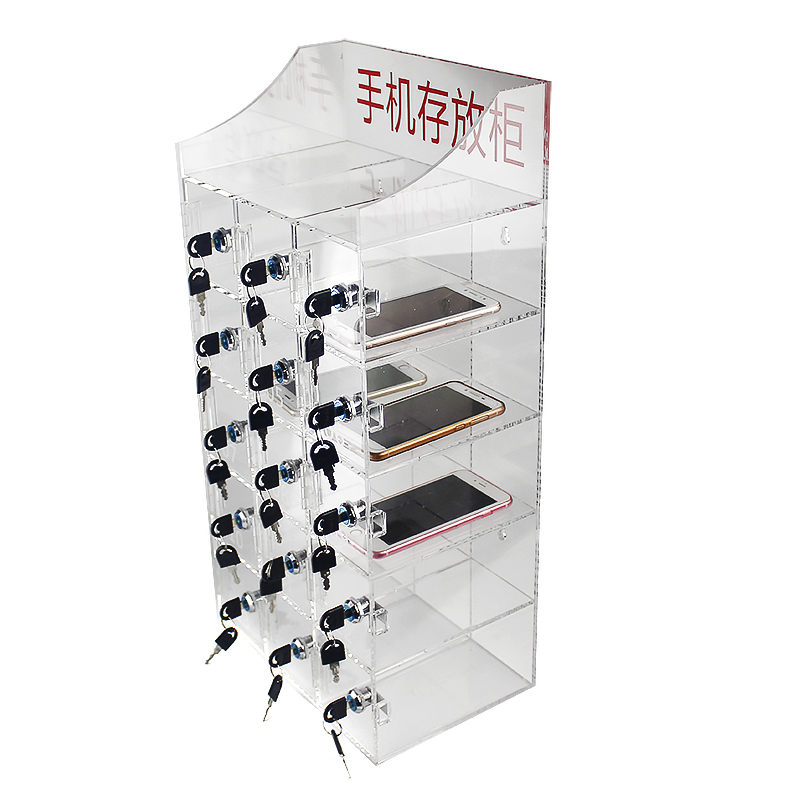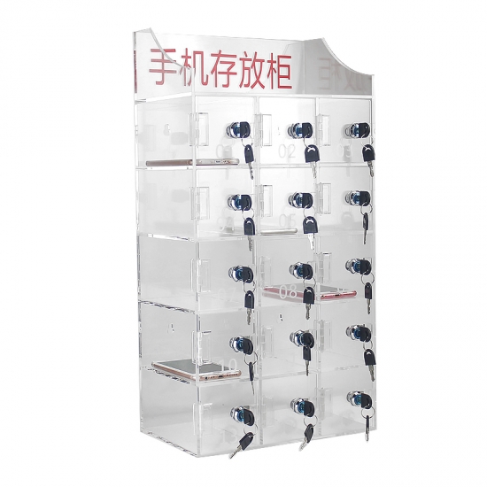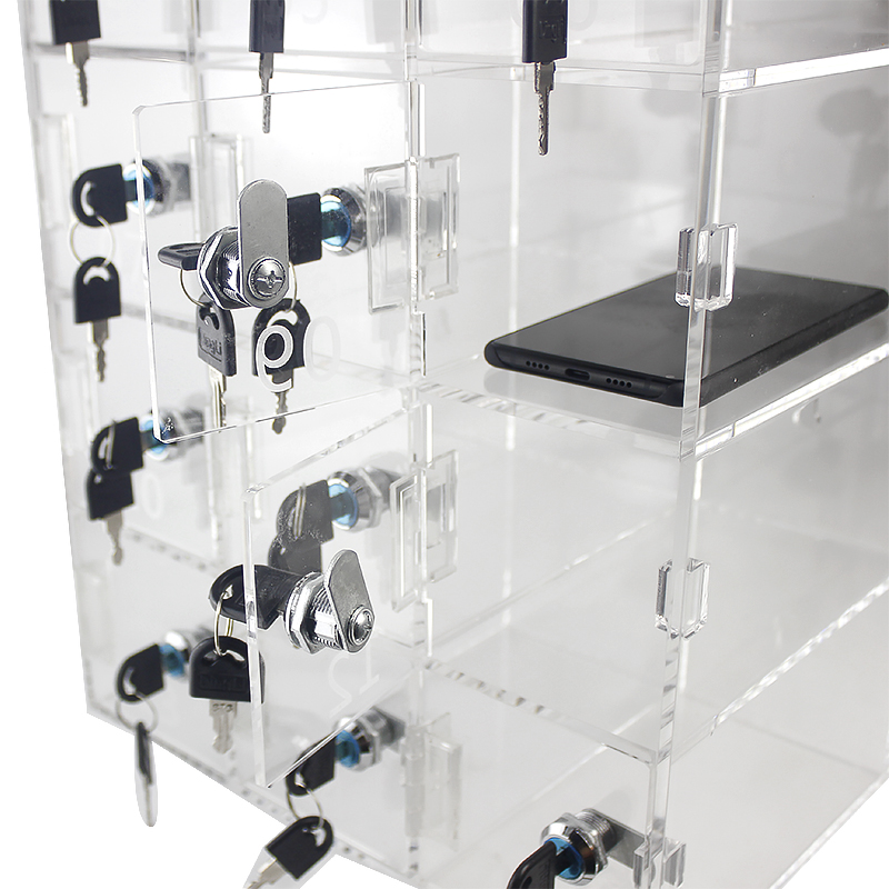 15 slots transparent clear acrylic phone storage box plexiglass display case with lock