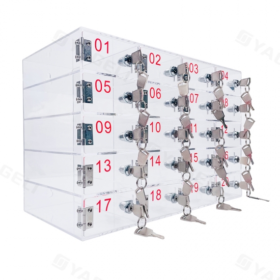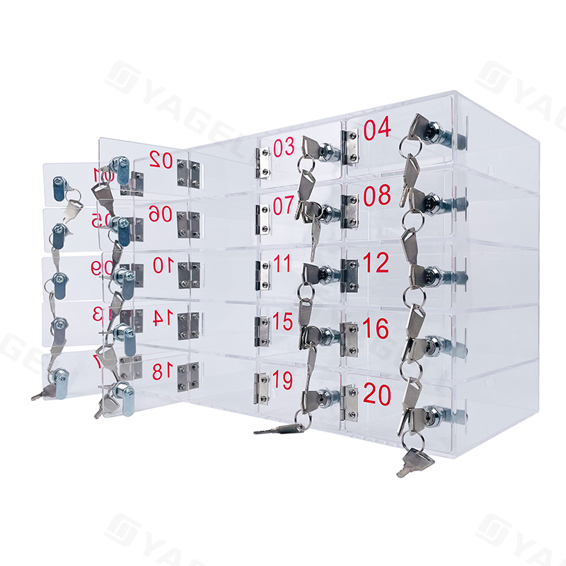 Made from sturdy clear acrylic, this cabinet offers transparent visibility for easy device identification; its 20 lockable compartments provide secure, individual storage to prevent theft, and the versatile design suits various settings like offices or schools, making it a practical solution for organizing and protecting multiple mobile devices.