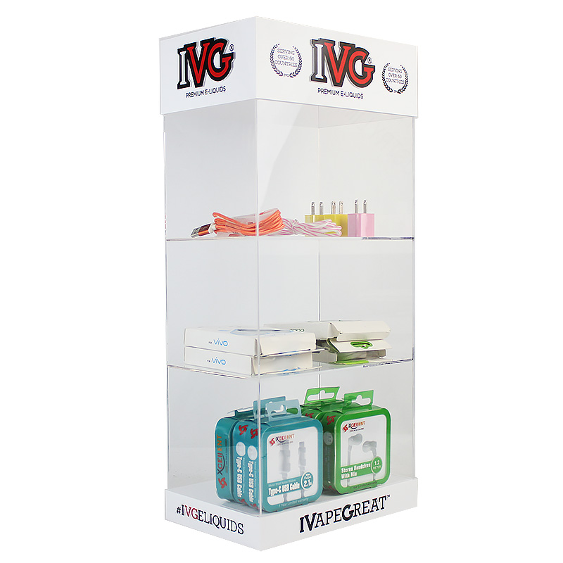 wall mounted custom plastic eliquid display case acrylic table top tobacco display rack