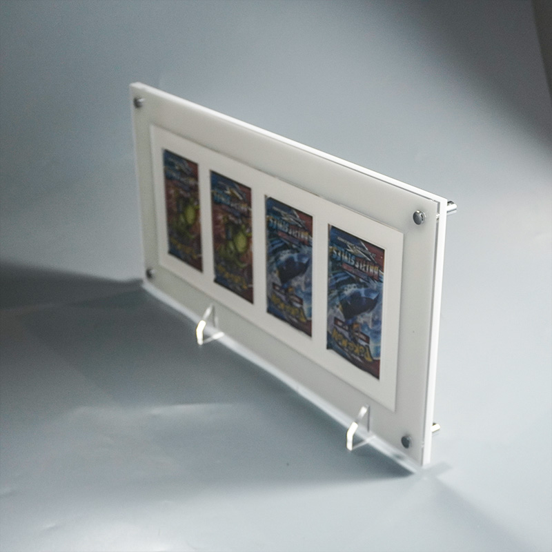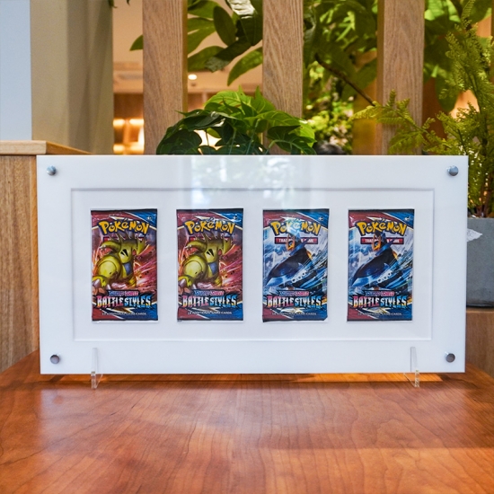 Crafted from high-quality, scratch-resistant acrylic, this 4-slot display offers robust protection against dust, scuffs, and minor damage to preserve the condition of booster packs; its clean white frame and transparent panels highlight pack artwork without distraction, and the dual-use (tabletop/wall) design adds flexibility for any display space. Unlike loose storage, it organizes packs neatly in a compact, eye-catching arrangement, balancing practical preservation with aesthetic appeal for both personal collections and small retail setups.