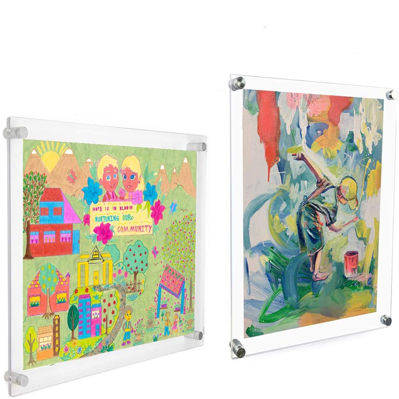 ELEGANT DESIGN- Super clear double panel acrylic material made to display 11x14 inch and other smaller size picture artwork with mat. Both for vertical or horizontal wall display. (Full frame size is 13x16 inch)