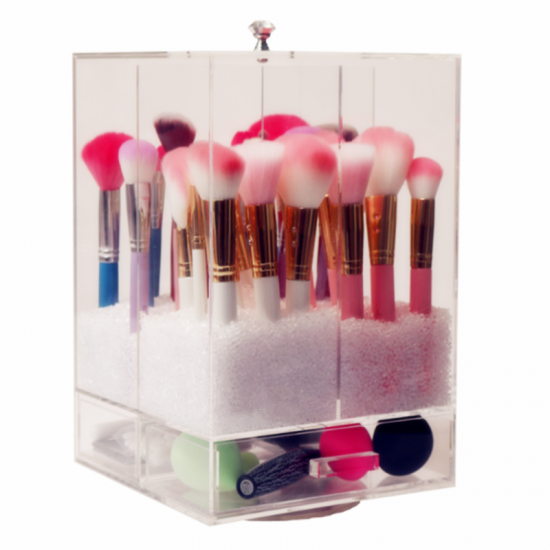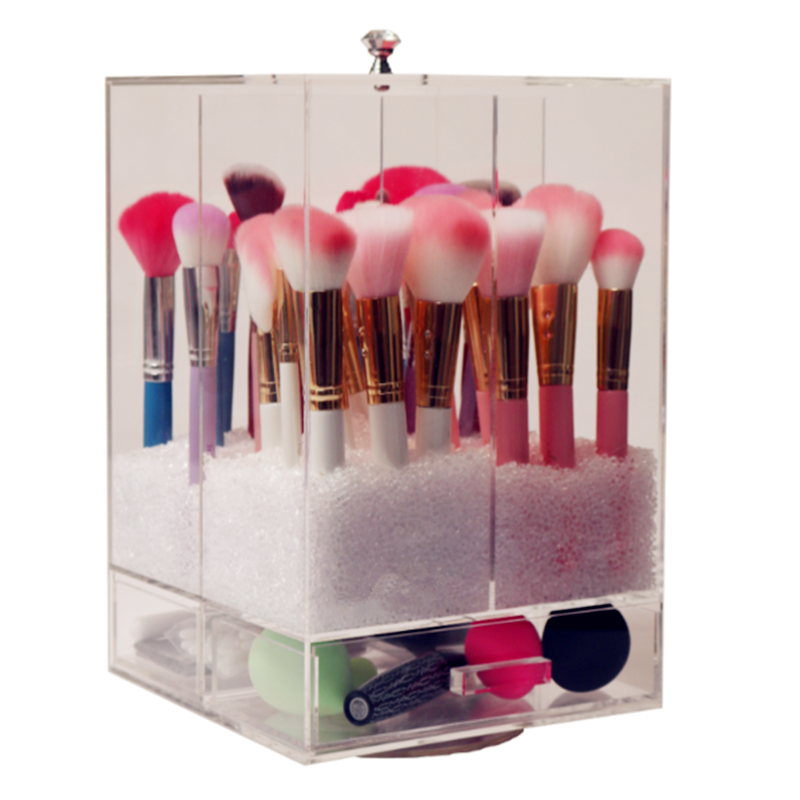 2) 4 divided parts for brush display, one small drawer designed for othen item. it is not easy to be broken.