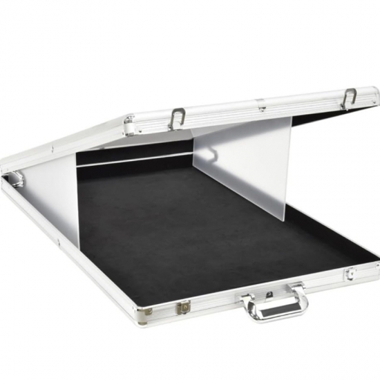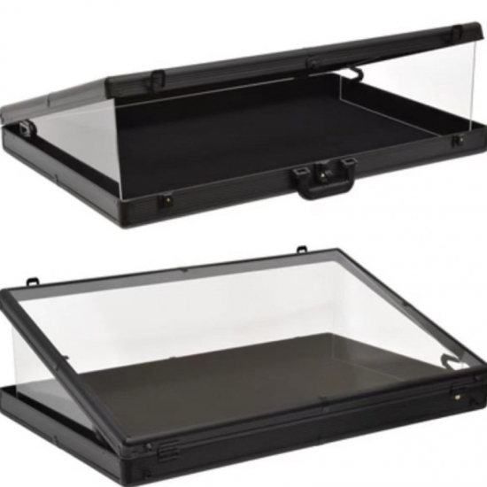 The interior is lined with soft black velvet to protect valuable items from scratches and damage, while the foldable support panel keeps the lid propped open for easy access and exhibit viewing. Ideal for storing and displaying collectibles, jewelry, electronic equipment, or delicate artifacts, this portable case combines professional presentation with reliable protection for both home and travel use.