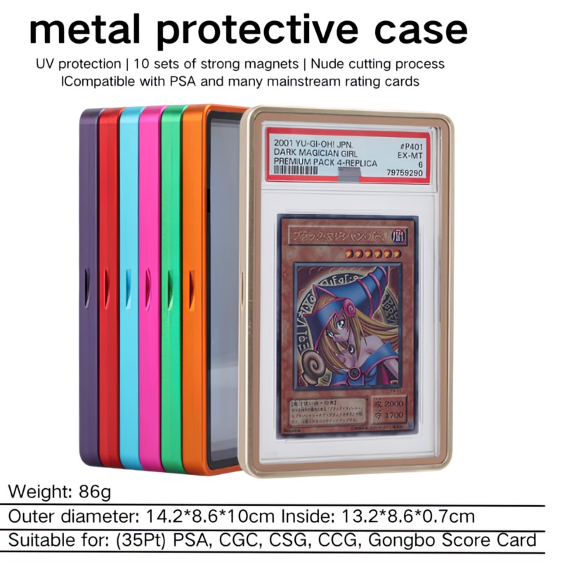 UV-Protected Aluminum Magnetic Graded Card Holder (SlabMags) is the premium graded card slab protector for B2B buyers. Built for Pokemon, TCG, and MTG graded cards, this aluminum magnetic graded card case features a rugged aluminum frame and secure magnetic closure—keeping cards safe during storage, shipping, or display. The UV protection layer ensures this graded card slab guard shields collectibles from sun damage, while the foldable stand turns it into a versatile graded card holder that doubles as a display piece.