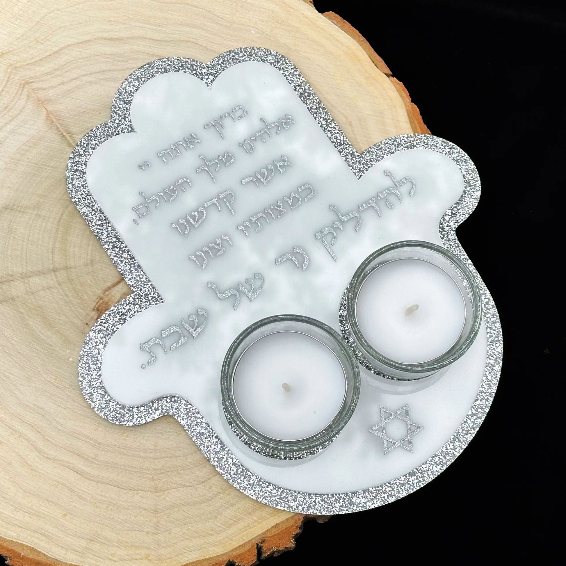 Source-factory Hamsa Lucite candle holder for Shabbat – durable, customizable, and tailored for B2B bulk needs. Samples & test orders welcome, with logo packaging available.