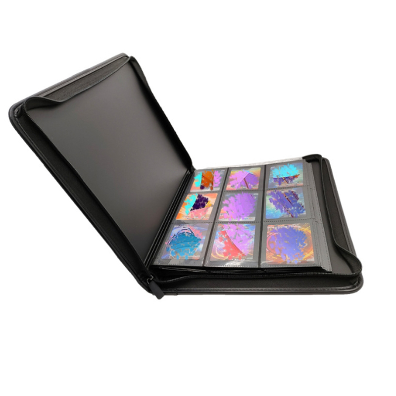 The black interior lining protects cards from scratches, while the zippered closure ensures contents stay safe during transport. Lightweight yet sturdy, it’s ideal for both casual collectors and competitive players to organize and showcase their valuable card collections.
