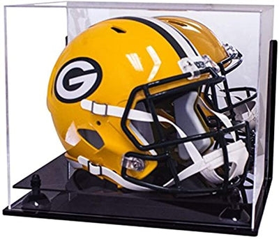 Acrylic two-layer base includes large gold, silver, black, red, white, orange, blue, purple, green, pink or yellow metal risers - not cheap plastic like many other cases. The riser color you receive may be slightly different from what you see on this list. This is due to changes in lighting, base/background color and/or color calibration of the device used to view the image. The bottom of the case comes with rubber feet to prevent scratching your desk or shelf. Football helmets of any size (except the largest game helmets) should have room for additional memorabilia such as game tickets, cards, etc. This is a great gift for anyone who has it all but needs something to show it off.