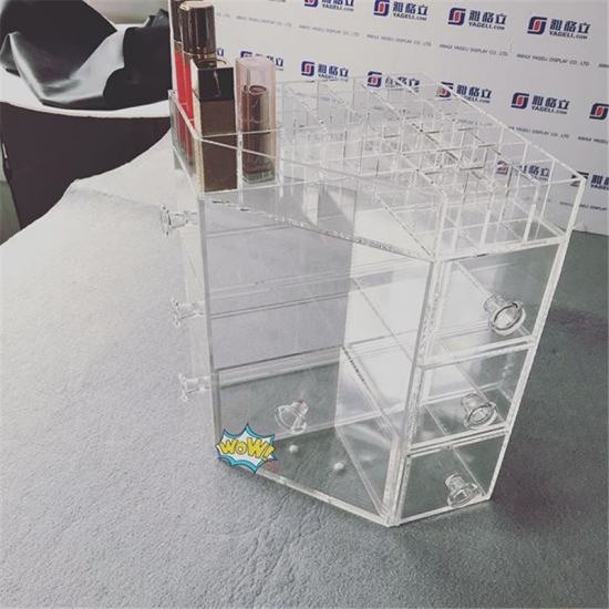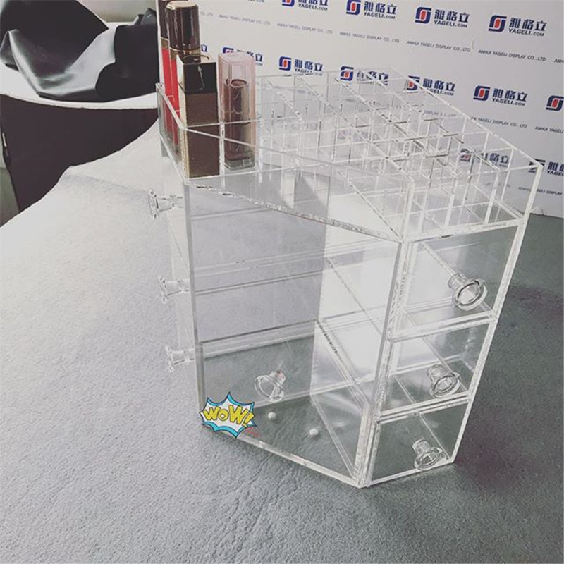 1. Durable & Elegant clear acrylic makeup case with drawers.