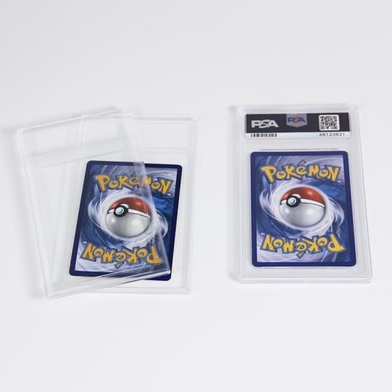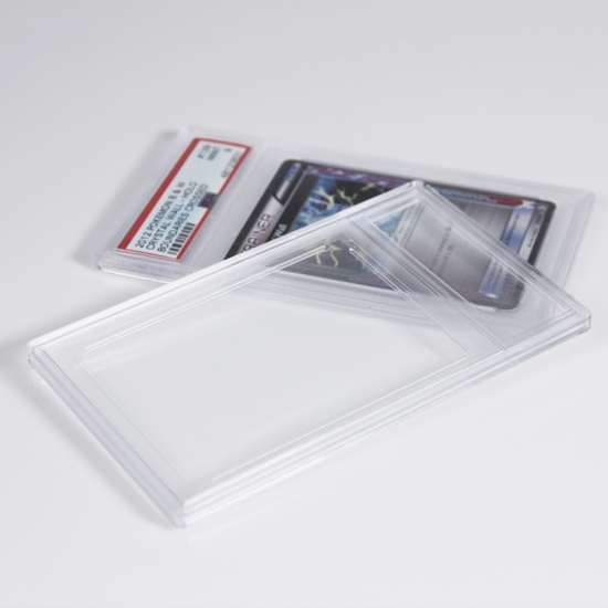 The core function of this acrylic case is to protect graded TCG card slabs: it acts as a barrier against environmental damage (dust, scratches, minor impacts) to preserve the slab’s condition and the card’s collectible value. It also serves as a display accessory, keeping the slab visible and intact while allowing users to showcase graded cards on shelves, in display stands, or in storage boxes without compromising protection. Additionally, it simplifies handling of valuable slabs, reducing direct contact with the graded holder itself.