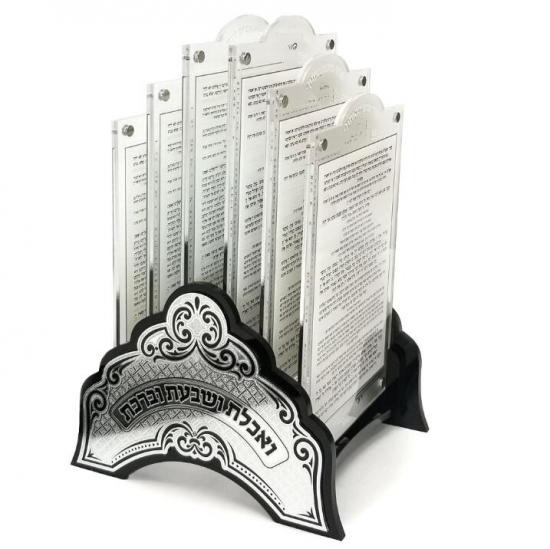 Judaica Acrylic Bencher Holder Royal Design with 8 Hebrew White Zemiros Bentchers Ashkenaz