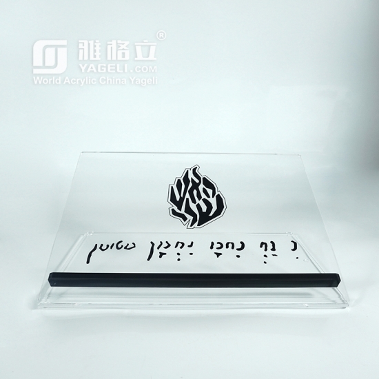 A sleek, transparent prayer stand made from durable acrylic — perfect for synagogues, study rooms, or gifting. Fully customizable and factory-direct.