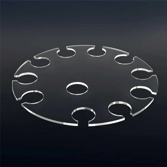 Acrylic Glass Tray Holder - This wall-mounted acrylic tray holder is made of acrylic and comes with 10 hols for holding tall glasses.