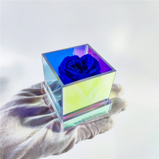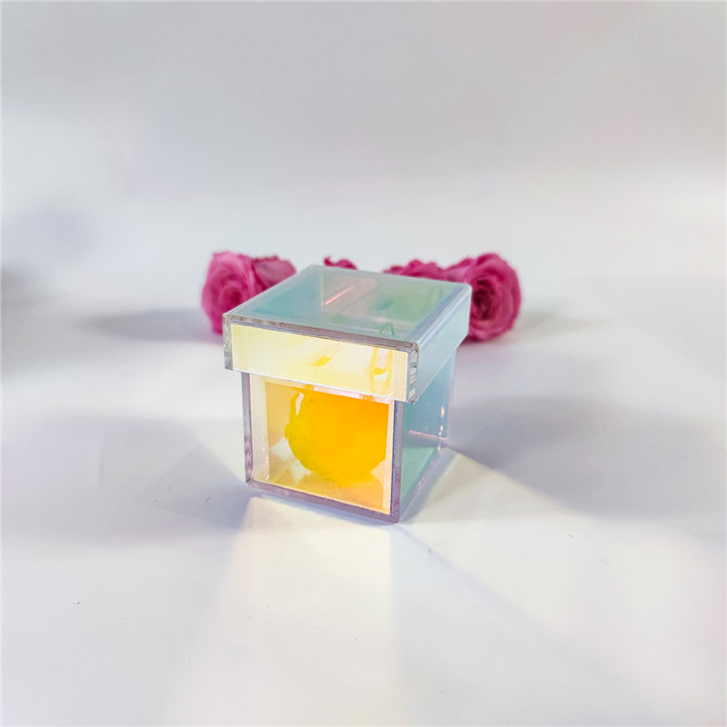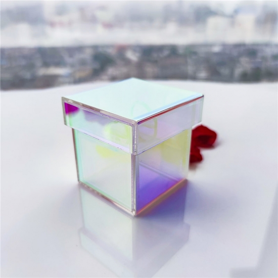 The Acrylic single rose Box is designed to perfectly hold the single preserved rose, made of 3 mm thick iridescent acrylic. The Removable lid and clapboard is waterproof,easy to open .