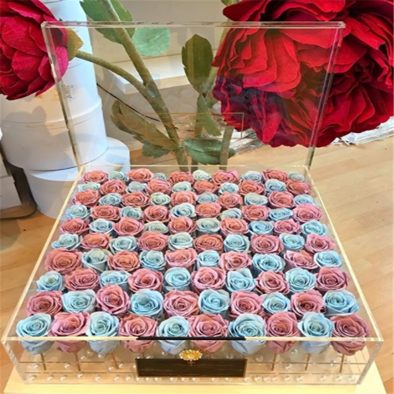 The Acrylic Flower Box with lid not only can store real flowers or fake flowers,but also can use it as a makeup organizer to storage your cosmetics.