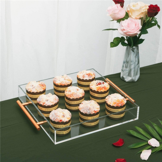 20-25 working daysLuxury rectangle clear acrylic coffee serving tray with gold handles