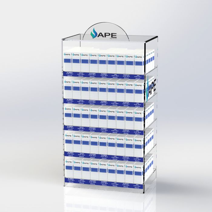 Made from clear acrylic throughout, this E-Cigarette or vaping fluid display unit is perfect for displaying many items at a counter top or beside a till.