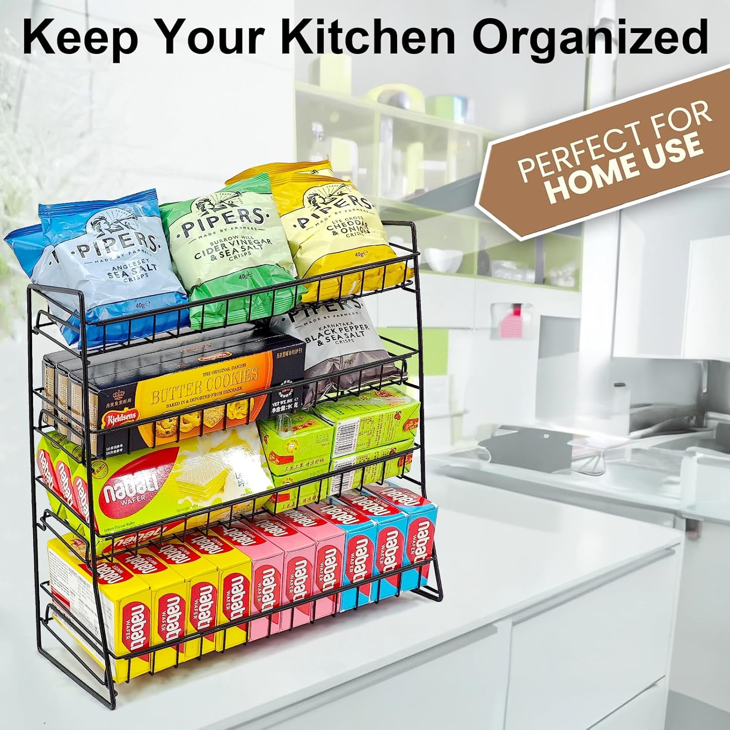 Space-Saving Candy Stand - Organize your party or kitchen efficiently with our chip display rack. This practical solution maximizes space while keeping snacks neatly arranged.