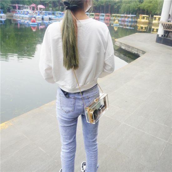 Product description:Clear Acrylic bag with gold chain