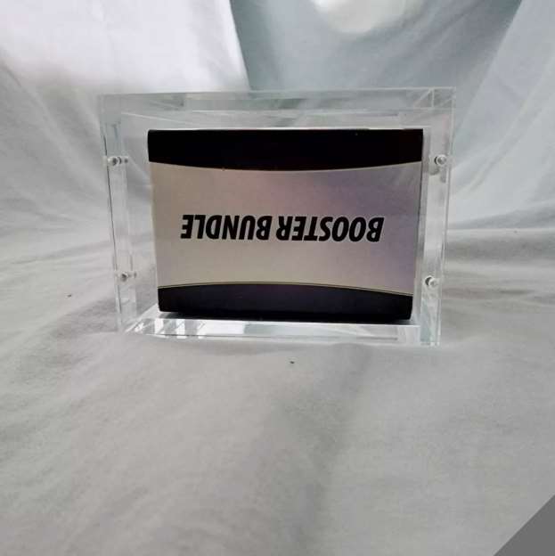 Protect your valuable Pokémon Booster Bundles and Build Battle Kits with this custom acrylic protector case. This case is made of high-quality acrylic, designed to safeguard your cards and collectibles from damage, while allowing you to showcase your Pokémon collection in a stylish way. We offer custom designs and logo printing on the packaging, ensuring a personal or branded touch. You can request samples to inspect the quality and see if it fits your needs before placing a larger order. We welcome test orders to make sure the case meets your expectations and standards.