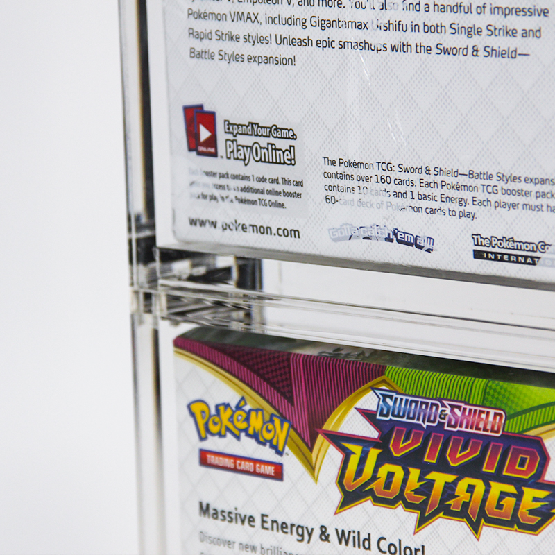 Made from high-quality, scratch-resistant acrylic, this stackable protector offers long-lasting durability to shield booster boxes from dust, scratches, and minor impacts; its transparent design preserves full visibility of box artwork while keeping contents pristine, and the stackable structure maximizes storage efficiency—allowing users to build a neat, visually appealing display of multiple boxes. Unlike flimsy plastic alternatives, it maintains structural stability even when stacked, combining practical protection with a sleek, professional presentation.