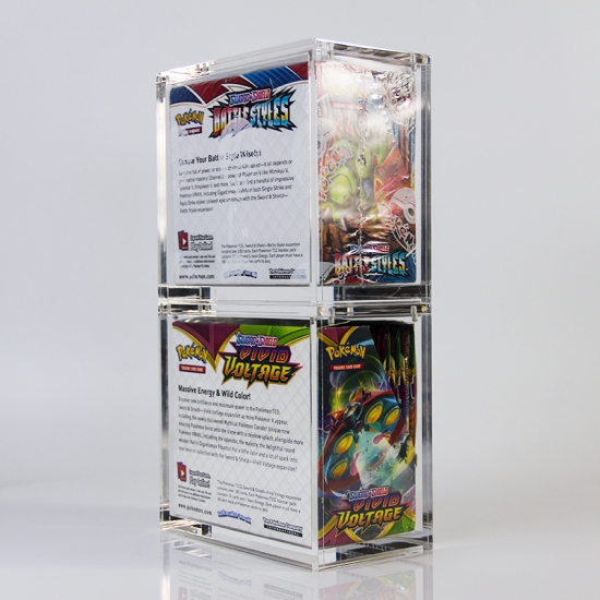 Crafted from clear, durable acrylic material, each case securely encases a single booster box while showcasing its original artwork through the transparent panels; multiple units can be stacked vertically to organize and display collections without taking up excess space, making it ideal for TCG collectors, retailers, or enthusiasts looking to protect and exhibit their booster box sets.