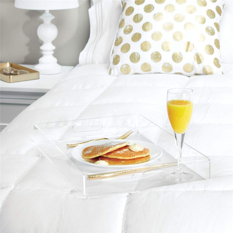 The transparent acrylic serving tray can be used to hold your books, drinks, and specifically for use as soap, towels or oil.