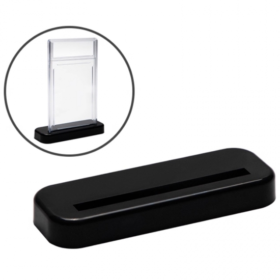 This sleek black acrylic PSA card slab base is designed to securely display and showcase your valuable graded sports cards.