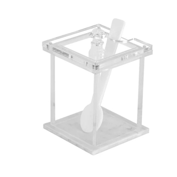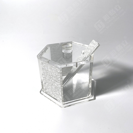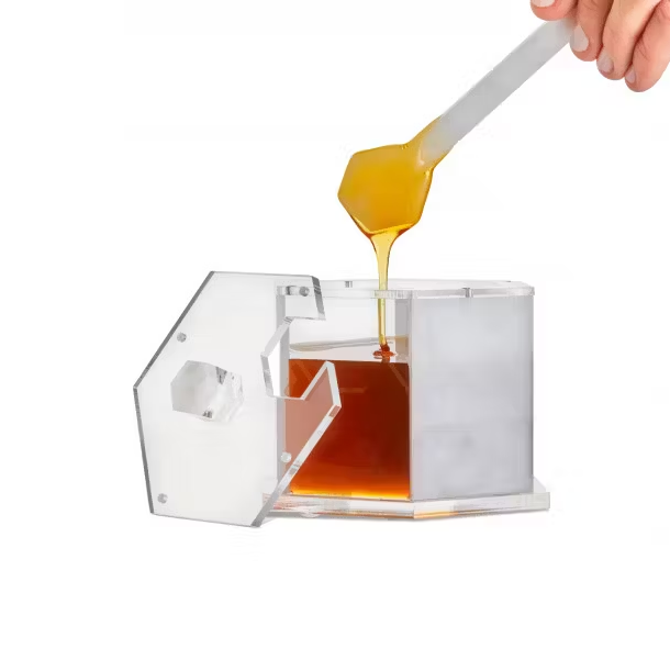 25-40 working daysAcrylic Lucite Hexagon Honey Dish with Base and Spoon, Gold, silver, marble color, custom design shape and printing for honey dish