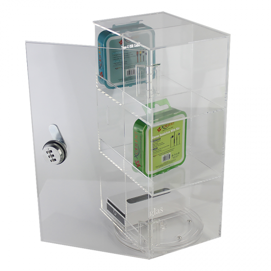 The transparent nature of this secure display cabinet ensures that the focus is on the products inside. Customized size options available .