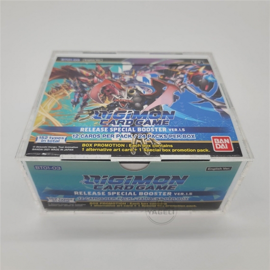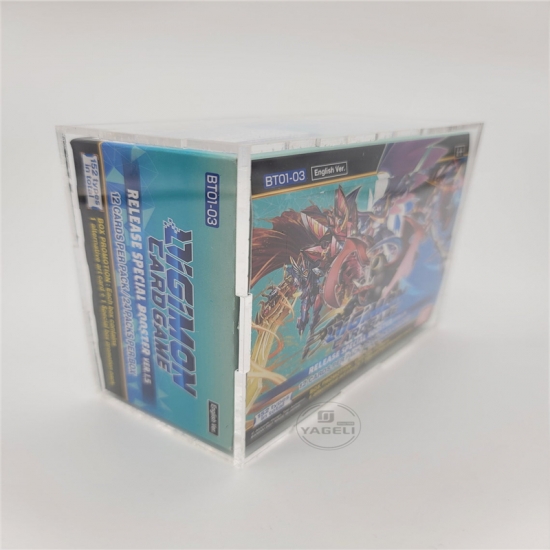 The Acrylic Digimon booster case is designed to perfectly hold the DIGIMON, made of 4 mm thick transparent acrylic.Tight sliding lid is not easy to open when protecting the booster box.