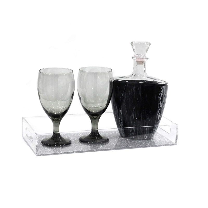 Rectangle customized size acrylic serving beverage trays with handles