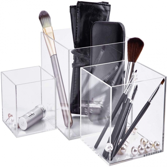 6.This acrylic storage cube fits for organizing palettes, makeup brushes, pens and bottles. Works great on bathroom vanities for tooth brushes and hair supplies.