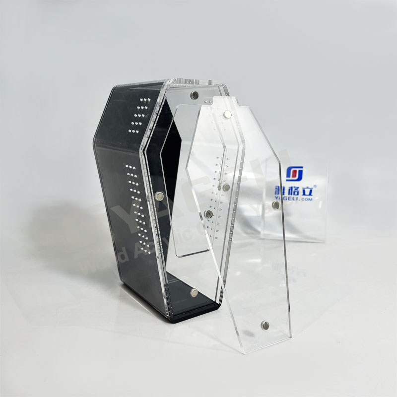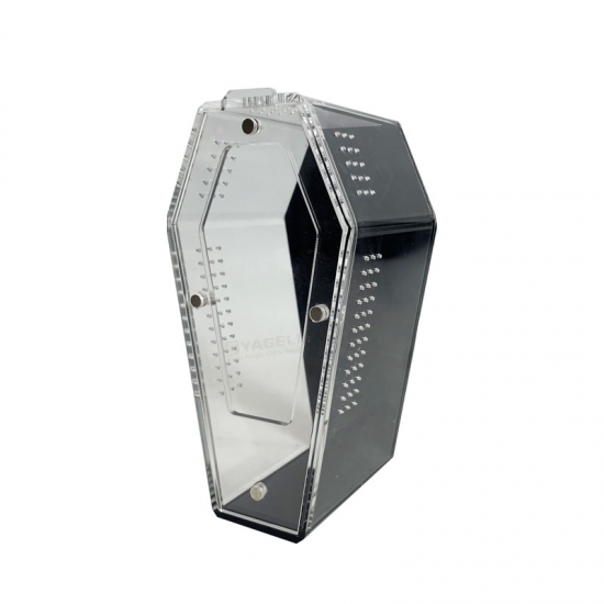 Standing out with 97% UV resistance, Unlike basic plastic habitats, its thick acrylic construction is shatter-resistant yet lightweight, and the black back provides a high-contrast backdrop that makes your spider’s colors and movements more visible. The precision-drilled ventilation holes (integrated into the design) ensure optimal airflow, while the secure snap closure prevents escapes without compromising easy access for feeding or maintenance.