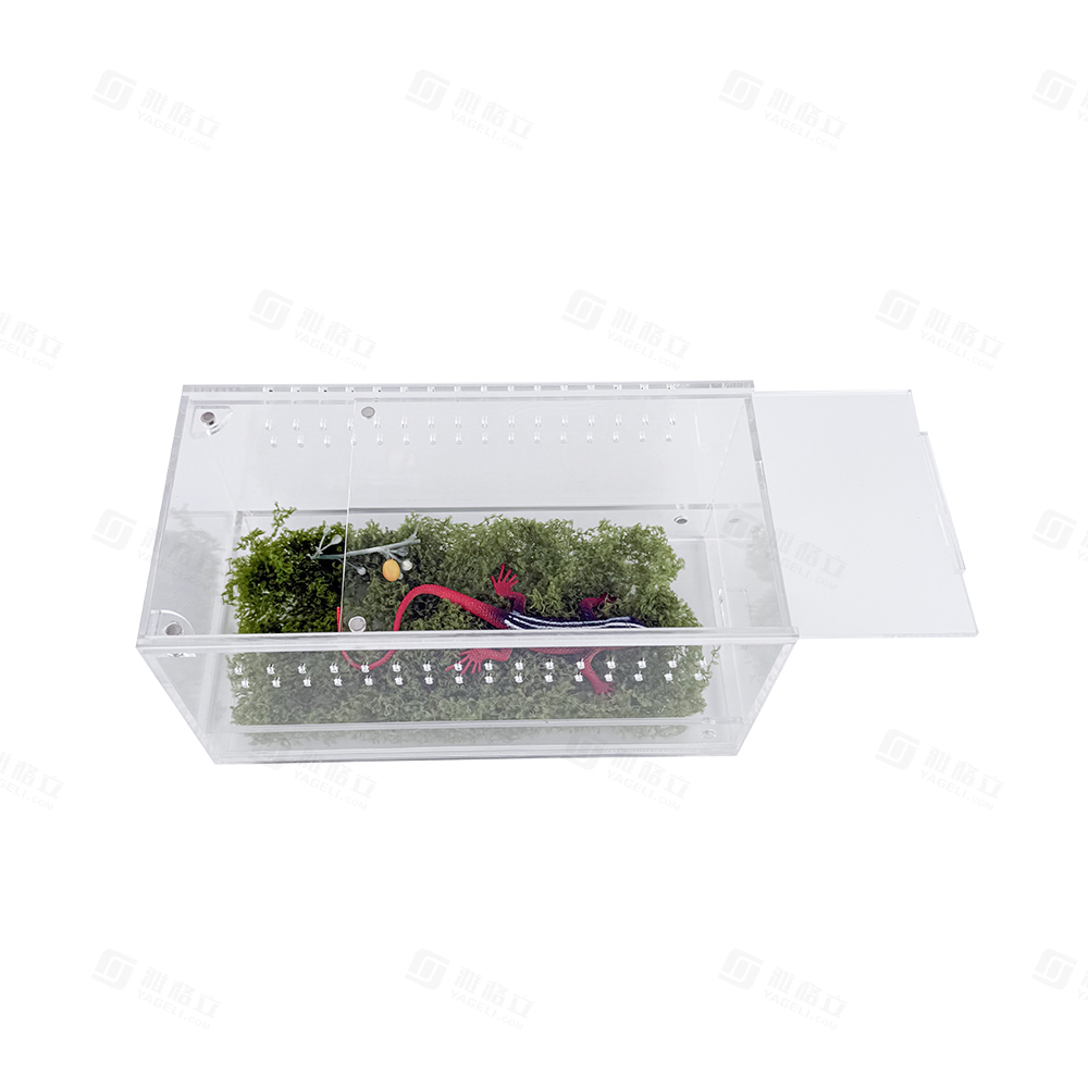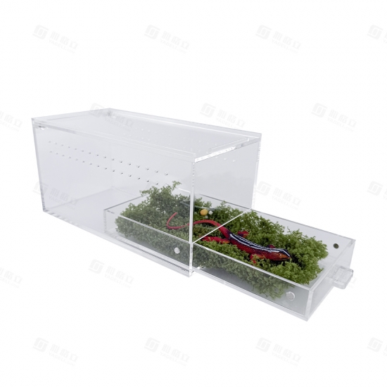 This enclosure serves as a secure, low-maintenance habitat for small exotic pets: the sliding drawer allows for quick substrate changes and spot cleaning, while the ventilated design maintains proper humidity and airflow. The transparent walls enable constant observation of your pet, and the UV-resistant material protects both the enclosure and your pet from light damage.