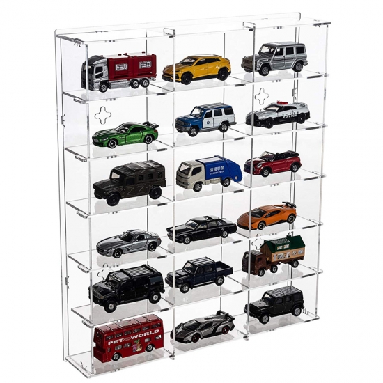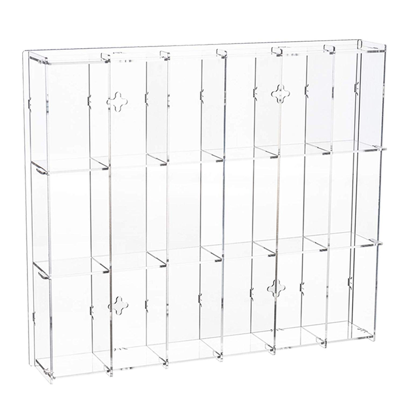 [Functionality and Versatility] This storage organizer and display cabinet is easy to install using the included hardware; its compact size and 18 separate sections make it an excellent choice for the entire family. Ideal for organizing and displaying mini collections, figurines, hot wheels, figurines, toys, souvenirs, etc.