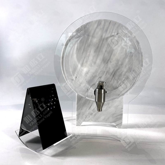 Product description: White marble acrylic bevarage dispenser with stand