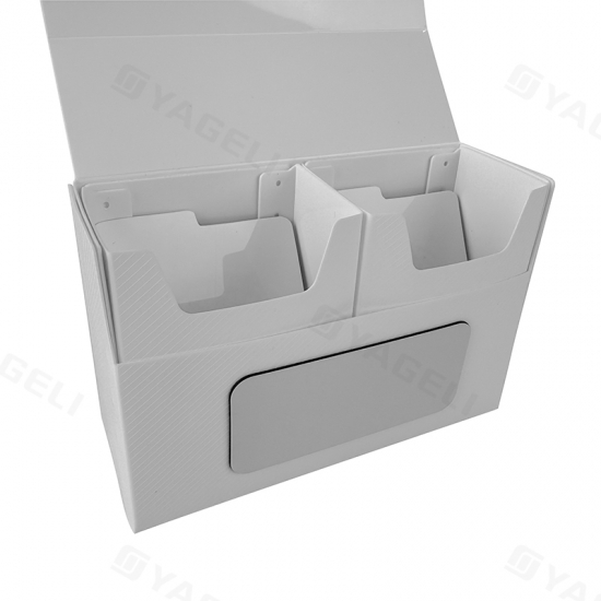 The Plastic card storage box laser-cut with high quality durable plastic trademark.