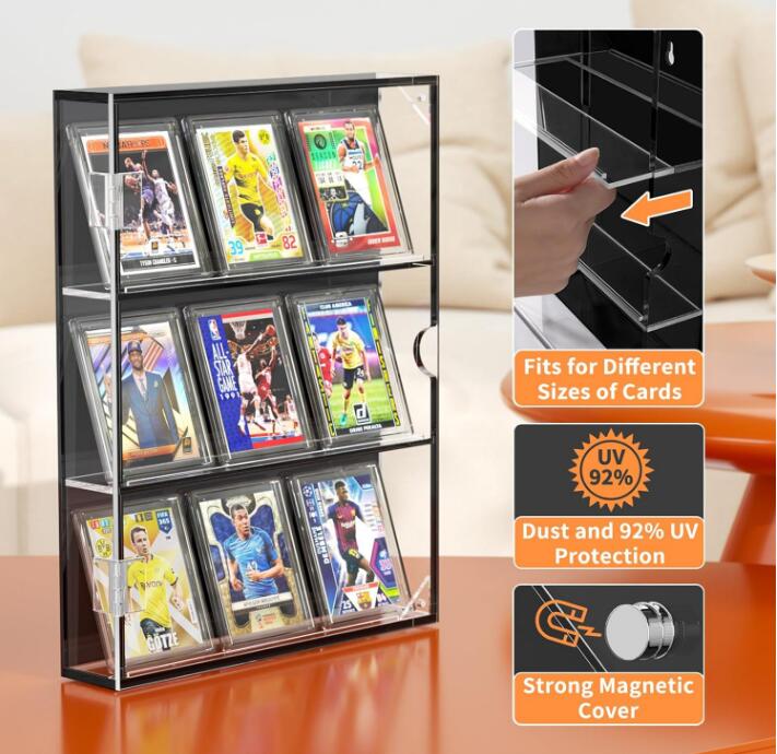 Wall Mount Baseball Card Slab Display - Compatible with PSA CGC BGS Trading Card Display - Sports Card Display Case for Basketball Football,Sport Cards Display,Adjustable Slot for More Cards,UV Protect & Display of Cards ,All-View Clear Acrylic Display, accept custom design, print your logo. Acrylic Baseball Card Display Case,Wall Mount Sports Cards Frame with UV Protection Magnetic Door Clear View,Trading Card Box with Pull Out for Football Basketball Hockey Pokemon