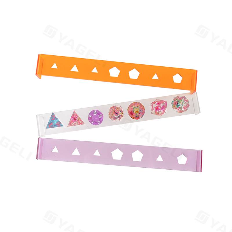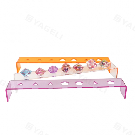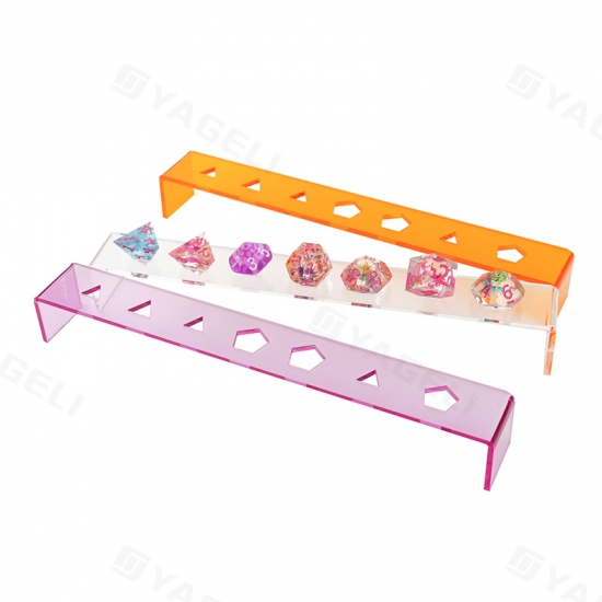 Made with durable acrylic, the holder is transparent to show off your colorful dice sets and keeps them protected from dust and scratches. We offer several sizes and layout options, so you can choose the configuration that best fits your collection. Additionally, we provide custom branding options, including logo packaging and the ability to engrave or print your design.