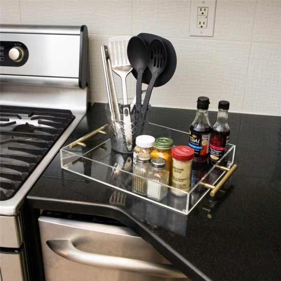 Multifunctional perspex trays with multiple uses and decorative purposes. It is very suitable as an entrance table to store decorative items or keys. It can be used as soap or perfume in your powder room, as an ottoman tray in a family room, as a coffee table tray or in a bedroom to hold a remote control, cocktail or magazine. The coffee table tray demonstrates the fashionable temperament.