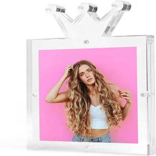 Double sided crown shaped clear 5x7 magnetic acrylic floating photo picture frame