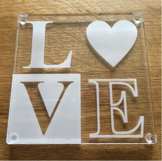 wholesale love letter clear personalised acrylic cut coasters