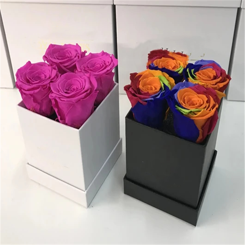 Our cardboard rose box displays your everlasting roses in the most dramatic way-suspended in a colored box.