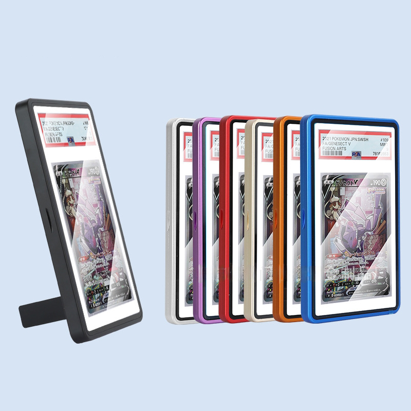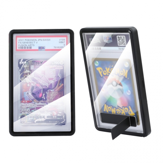 This product is a professional Pokémon Trading Card Game (TCG) card display and protection solution. It uses a durable black frame to firmly fix PSA-rated cards. The transparent acrylic panel provides a clear view, allowing collectors to fully appreciate the card pattern, details and rating information. It comes with a practical stand that can be tilted for optimal display, suitable for personal collections, trading card stores or card-related activities. Whether you own rare Pokémon V cards or other valuable premium TCG items, this card holder will keep them safe while making them stand out to the passionate Pokémon card collector.
