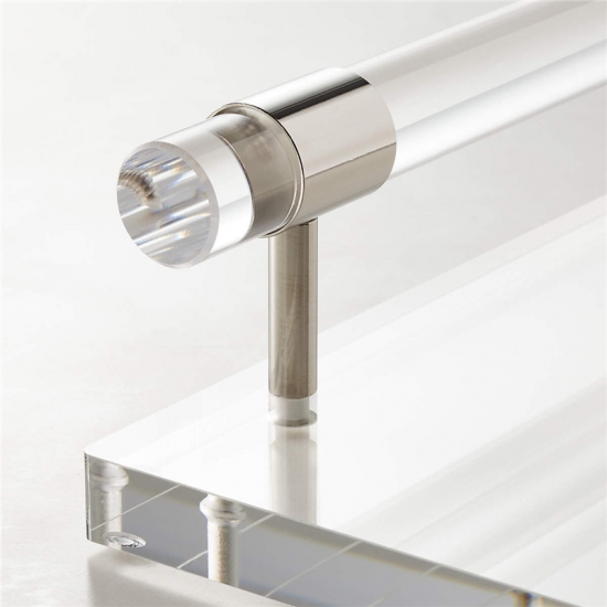 Multifunctional perspex trays with multiple uses and decorative purposes. It is very suitable as an entrance table to store decorative items or keys. It can be used as soap or perfume in your powder room, as an ottoman tray in a family room, as a coffee table tray or in a bedroom to hold a remote control, cocktail or magazine. The coffee table tray demonstrates the fashionable temperament.