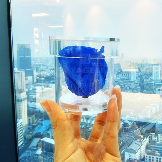 Our acrylic rose box displays your everlasting roses in the most dramatic way-suspended in a transparent box, you can admire the flowers 360 degrees.