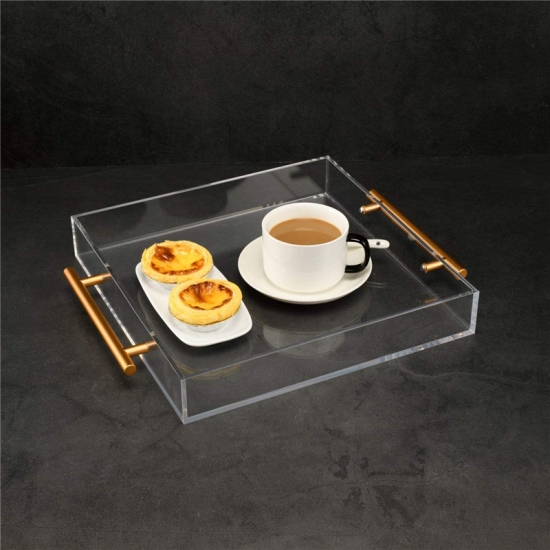 Multifunctional perspex trays with multiple uses and decorative purposes. It is very suitable as an entrance table to store decorative items or keys. It can be used as soap or perfume in your powder room, as an ottoman tray in a family room, as a coffee table tray or in a bedroom to hold a remote control, cocktail or magazine. The coffee table tray demonstrates the fashionable temperament.