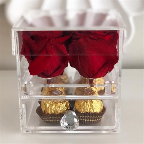 Product description:Transparent acrylic 4 rose flower box with drwer